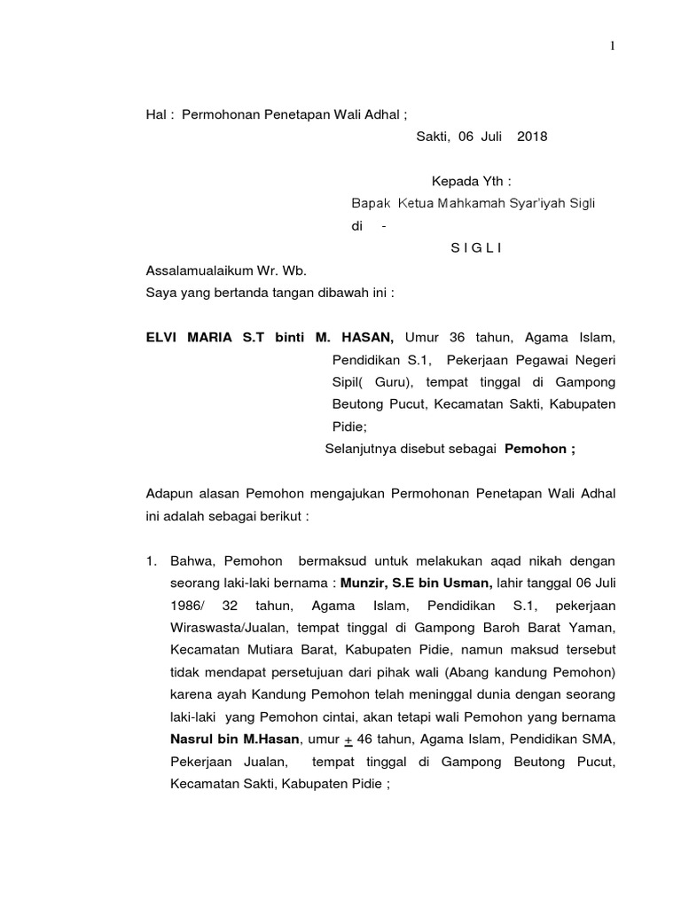 | Judul: 15 Contoh Surat Gugatan Wali Adhol |